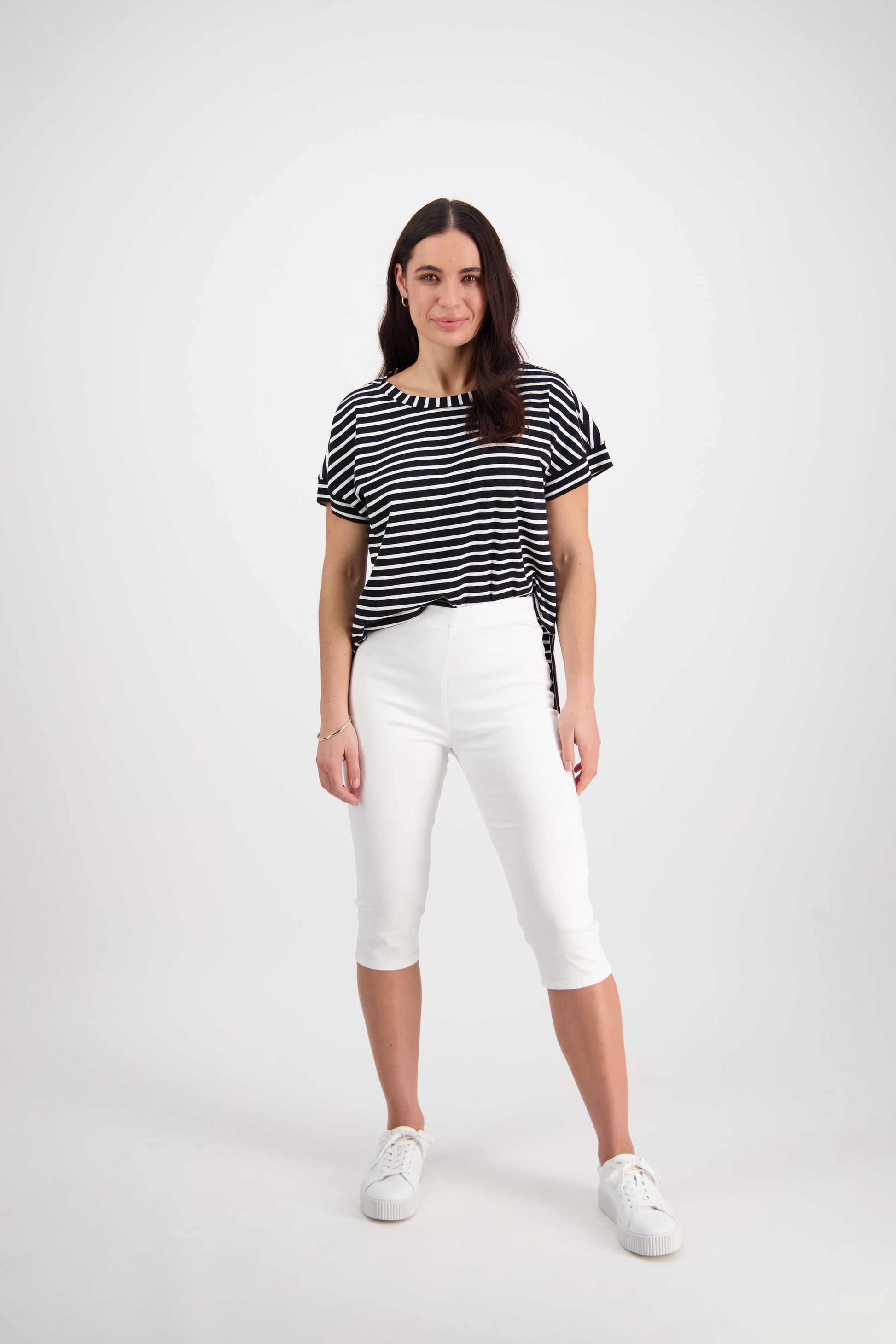 Vassalli Plain Skinny Leg 3/4 Length Lightweight Pull On Pant – White