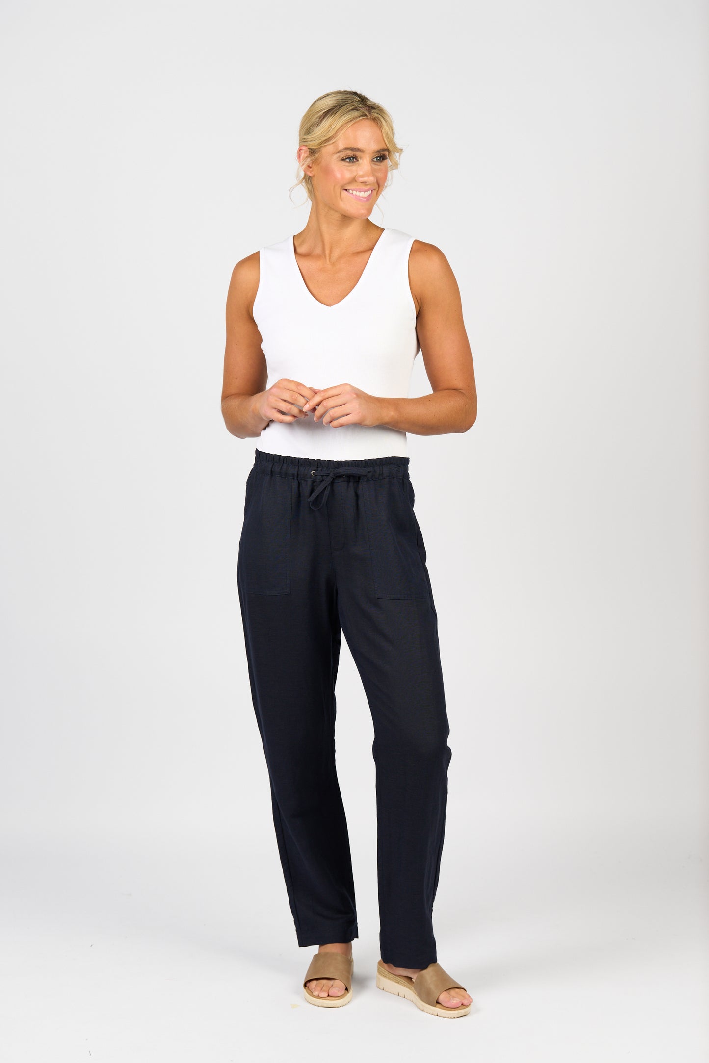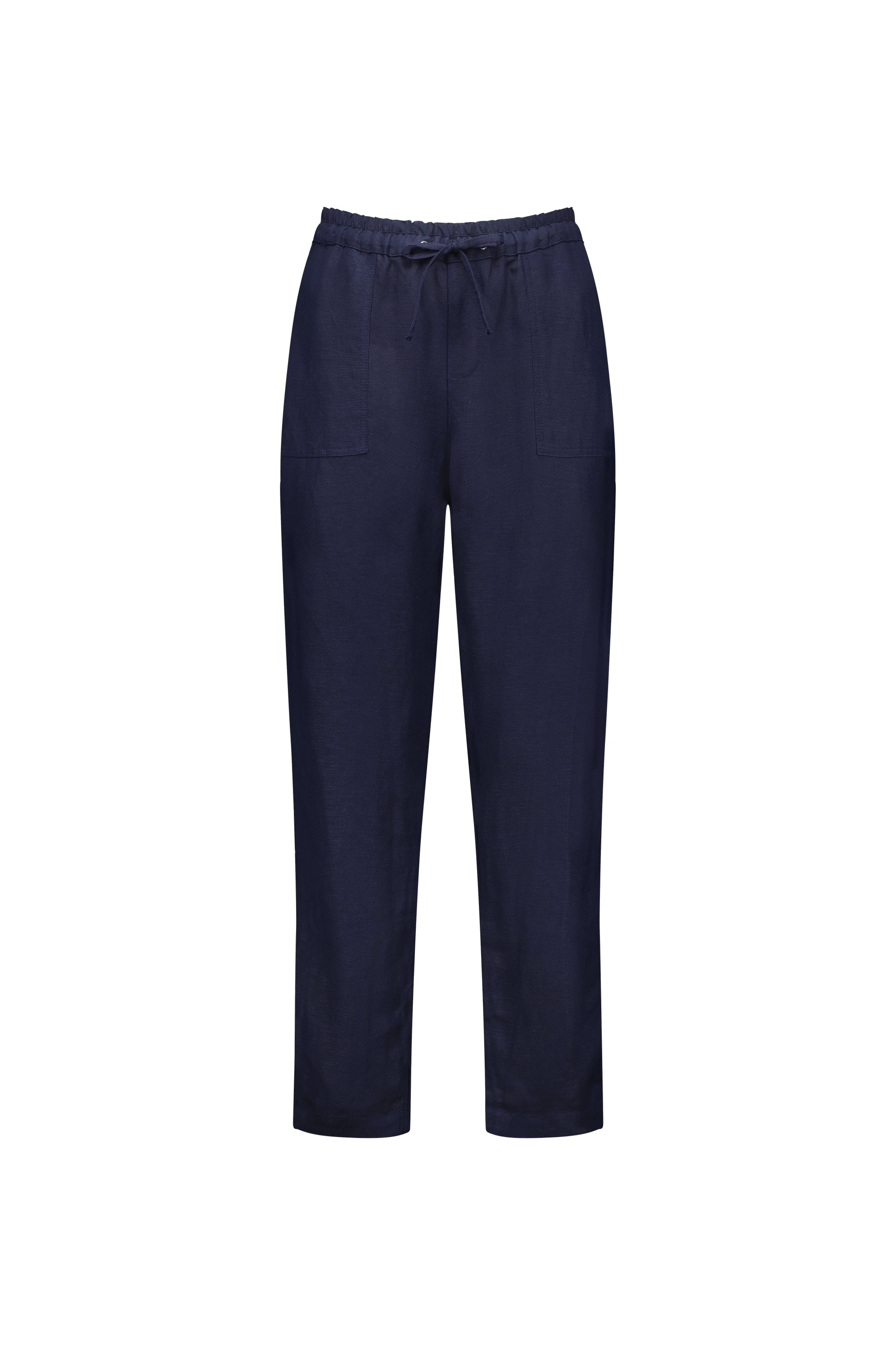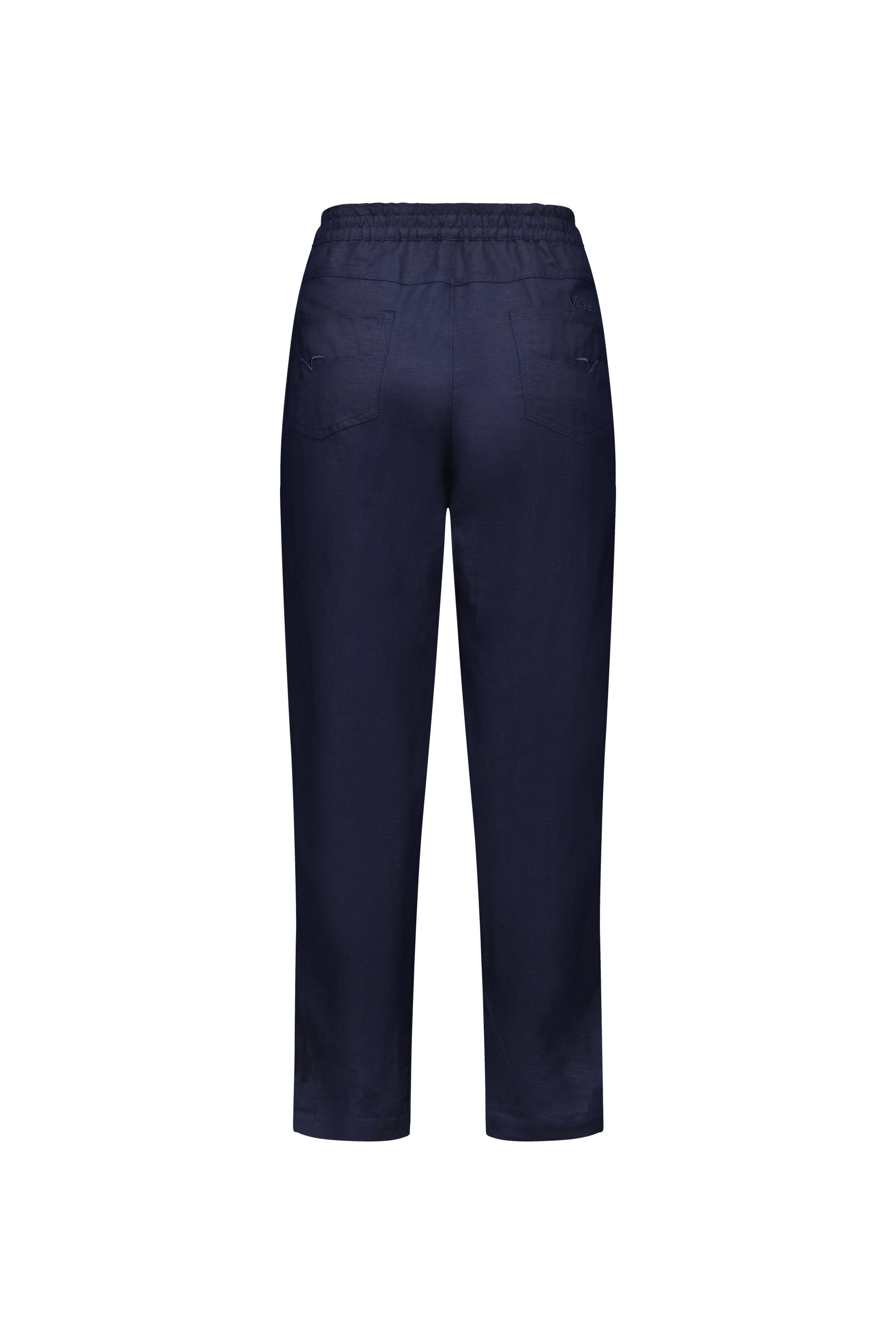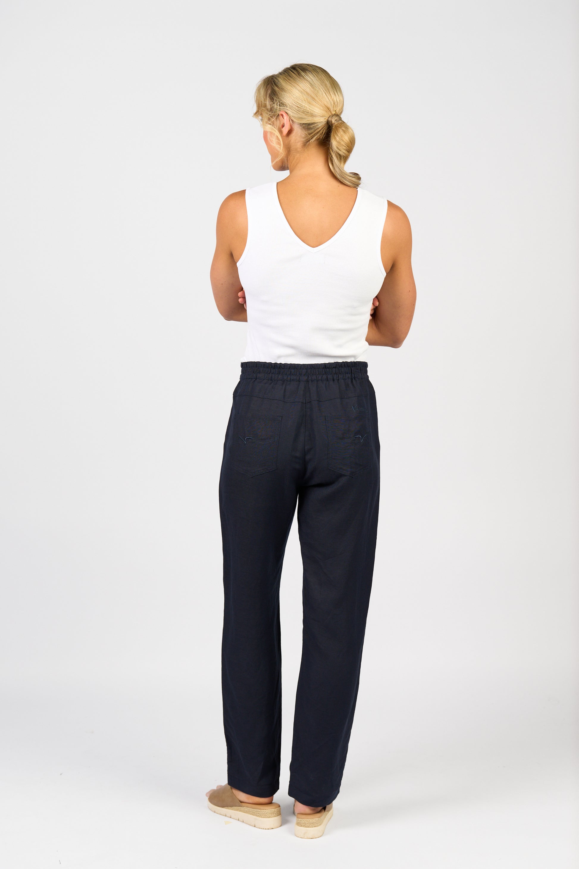 Vassalli Slim Leg Ankle Grazer Elastic Waist Linen Pant – Ink