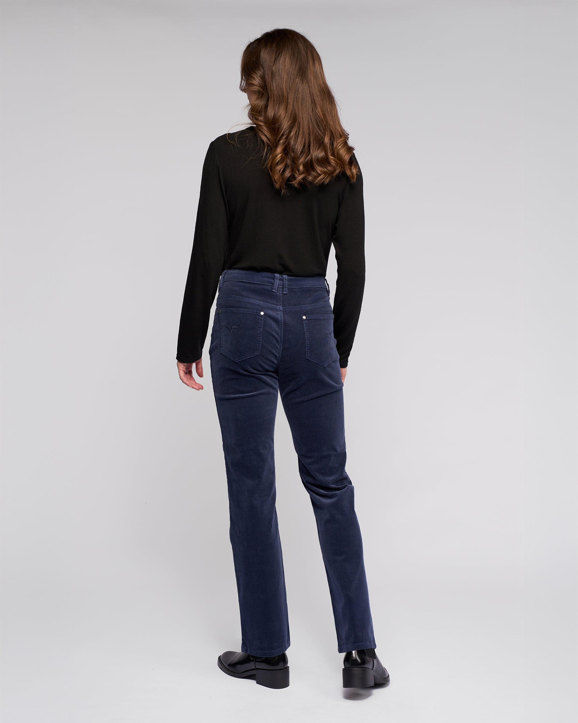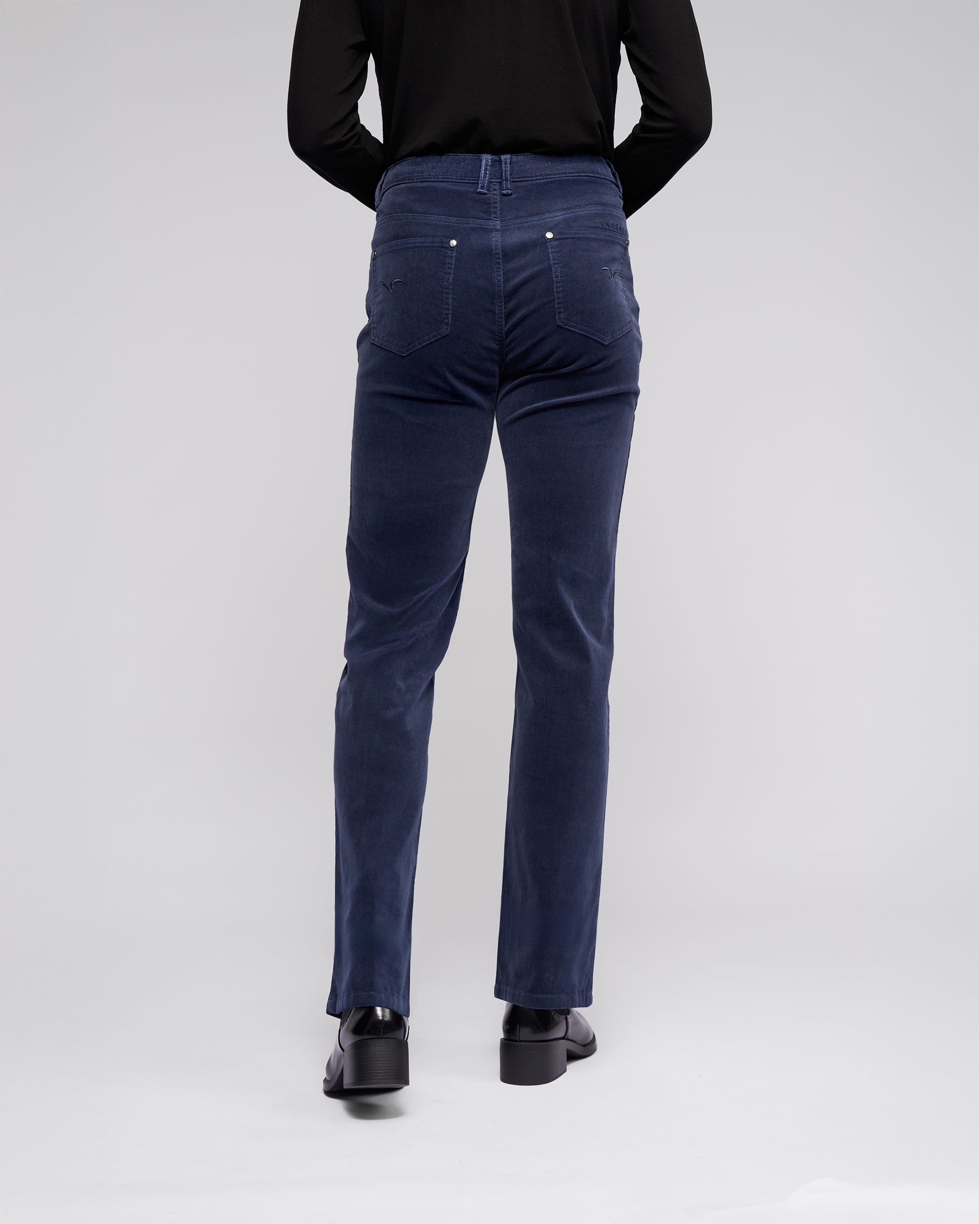 A classic straight‑leg, full‑length pant crafted from stretch pinwale cord in our Slate colourway — a versatile dark grey designed for effortless everyday wear. Offering a refined yet understated finish, this easy‑to‑wear style features a clean silhouette that works seamlessly across casual and polished looks. Finished with a metal ‘V’ logo jean button, belt loops, and a zip fly, it includes practical pocket detailing with subtle branded accents for a timeless wardrobe staple.