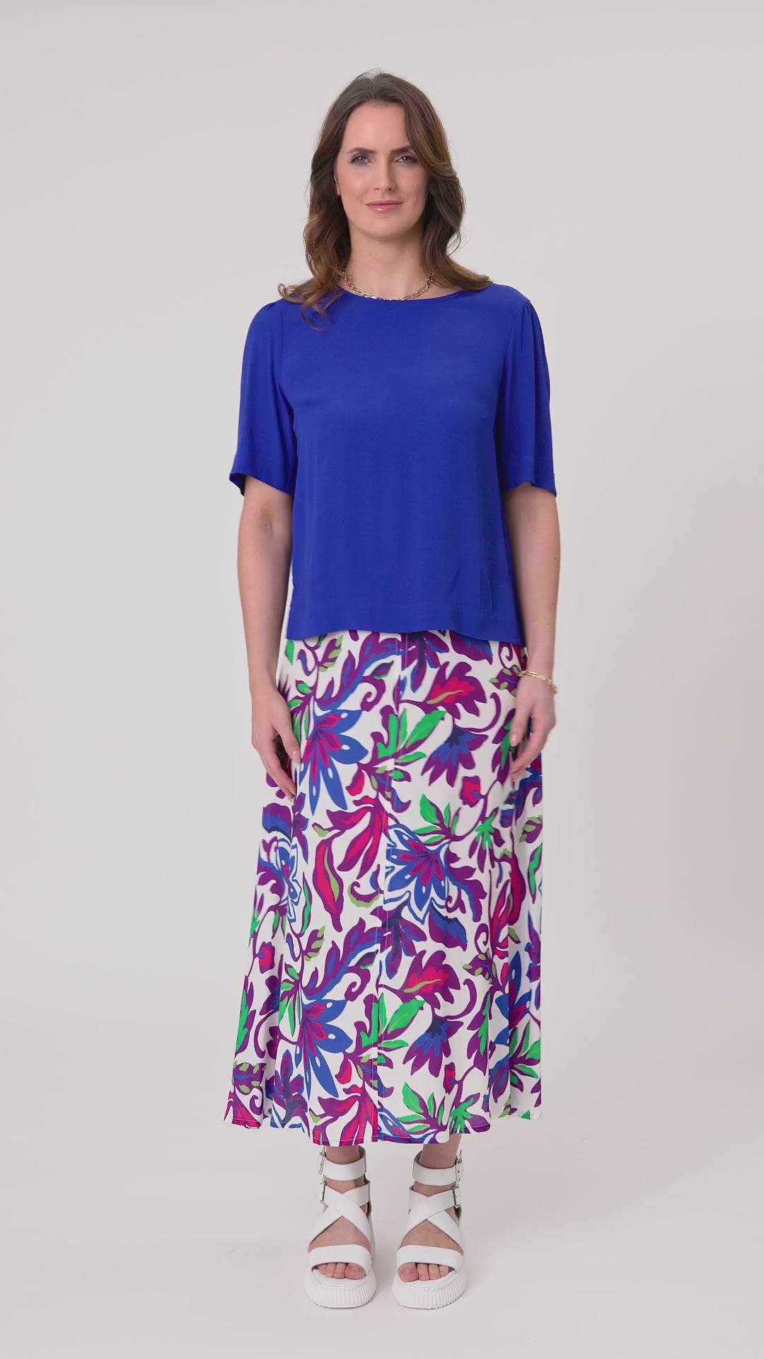 I haven’t worn this summer top yet, but I’m delighted with the fabric, it’s soft and flows beautifully. The colour is gorgeous and the fit is true to size. The short sleeves have plenty of room for bigger arms which is a bonus! Roll on summer so that I can wear it!