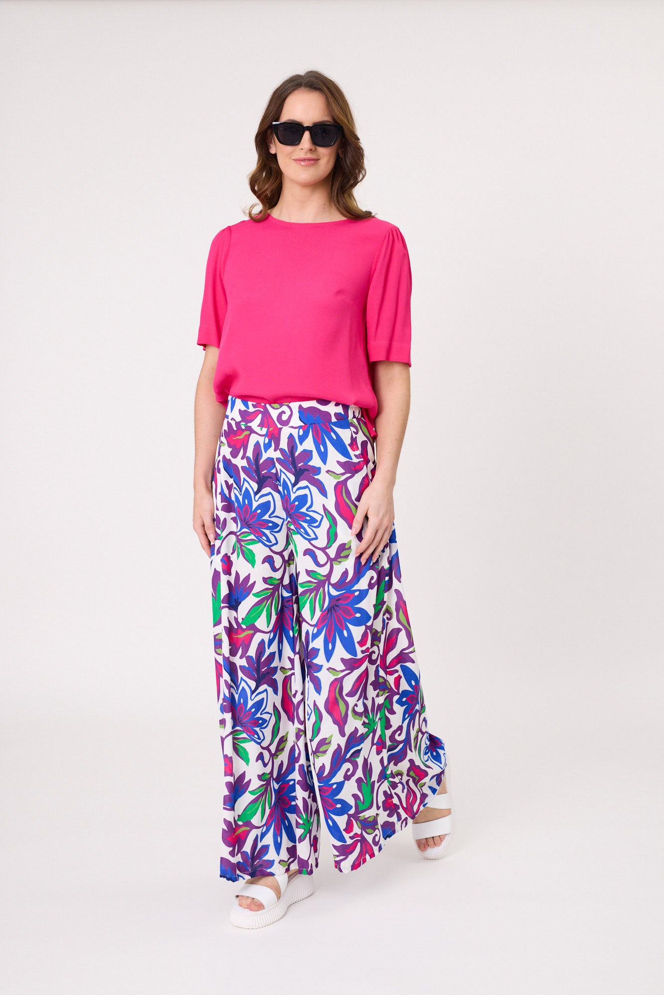 This effortlessly chic dress is available in Fuchsia, offering a light, crepe-like feel for an airy drape. Featuring a round neckline with subtle sleeve cinching at the shoulder, it delivers a refined yet relaxed silhouette. Crafted from a soft viscose-rayon blend, it provides all-day comfort with an elegant flow.