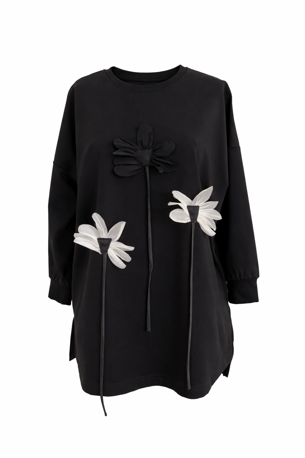 Black Sweat shirt long sleeves with cuffs and longer length garment