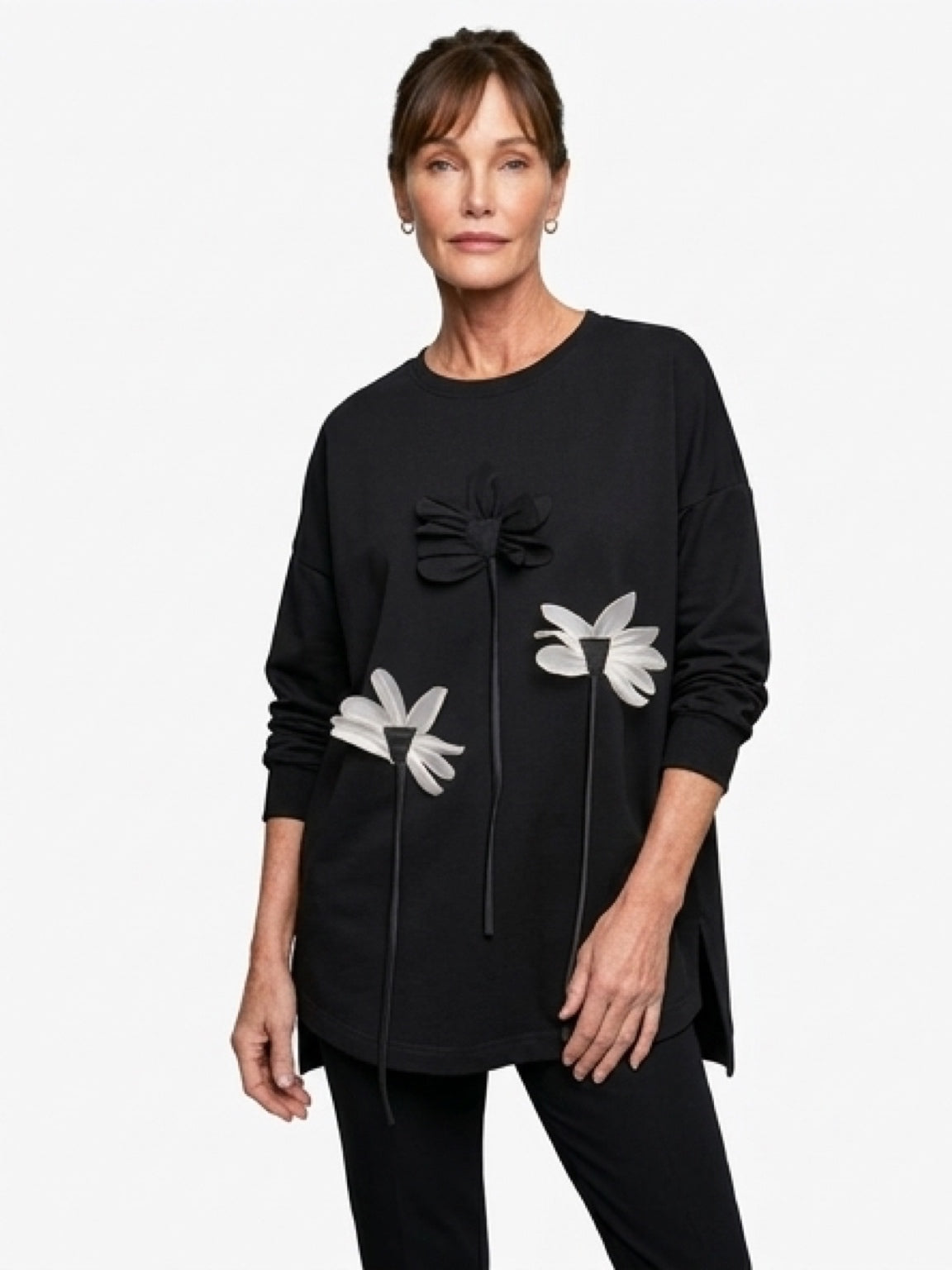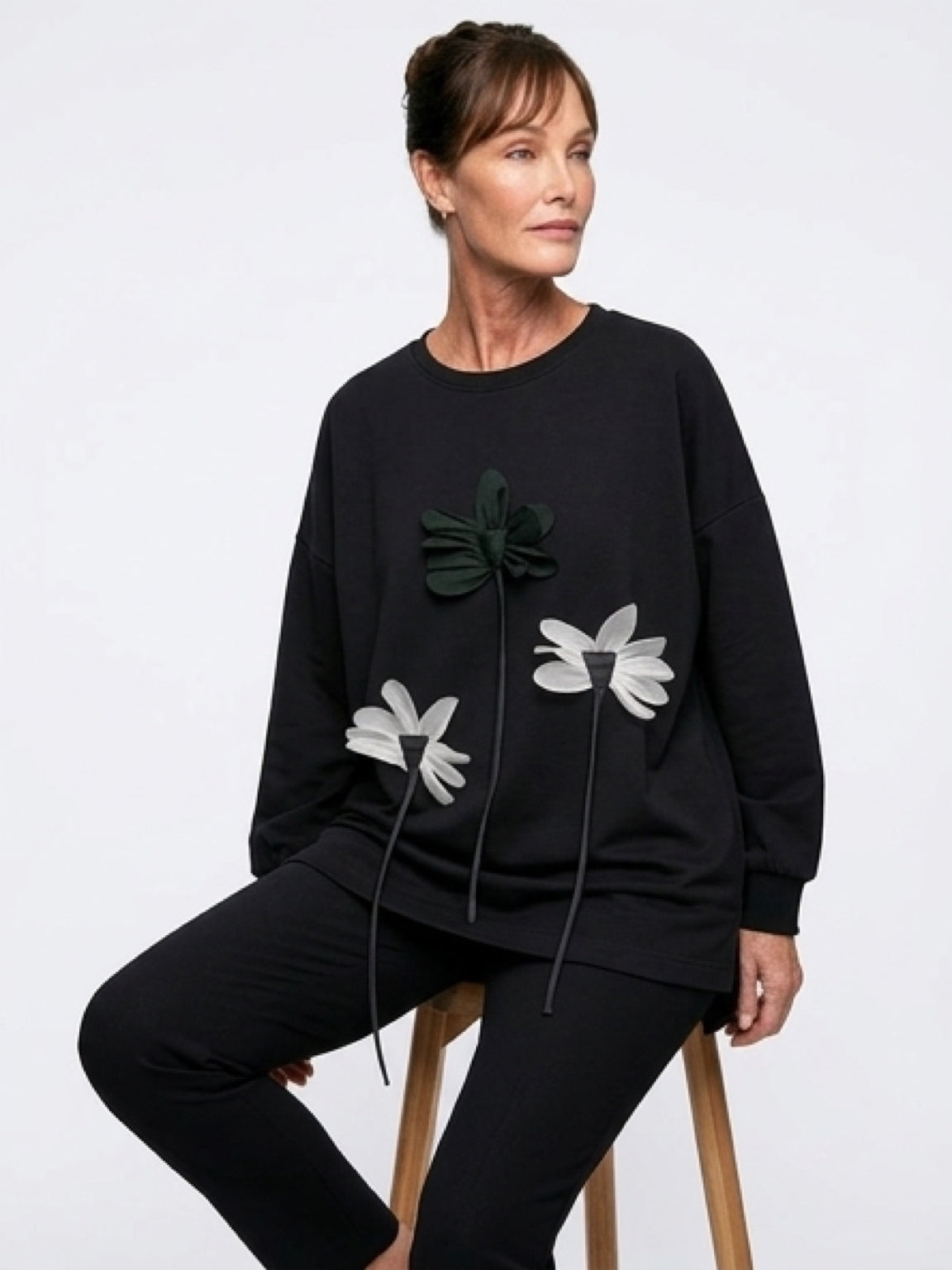 Black Sweat shirt long sleeves with cuffs and longer length garment