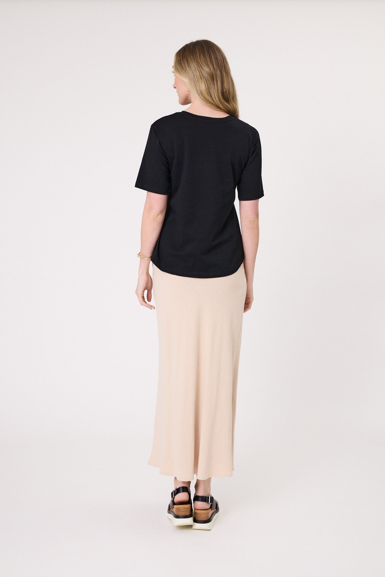 A playful everyday tee available in classic white, black, and soft pink, each finished with a charming gold foil heart detail. Featuring a round crew neckline and relaxed half sleeves, it’s an easy, flattering option for effortless outfitting. Crafted from 100% cotton for breathable comfort and softness.