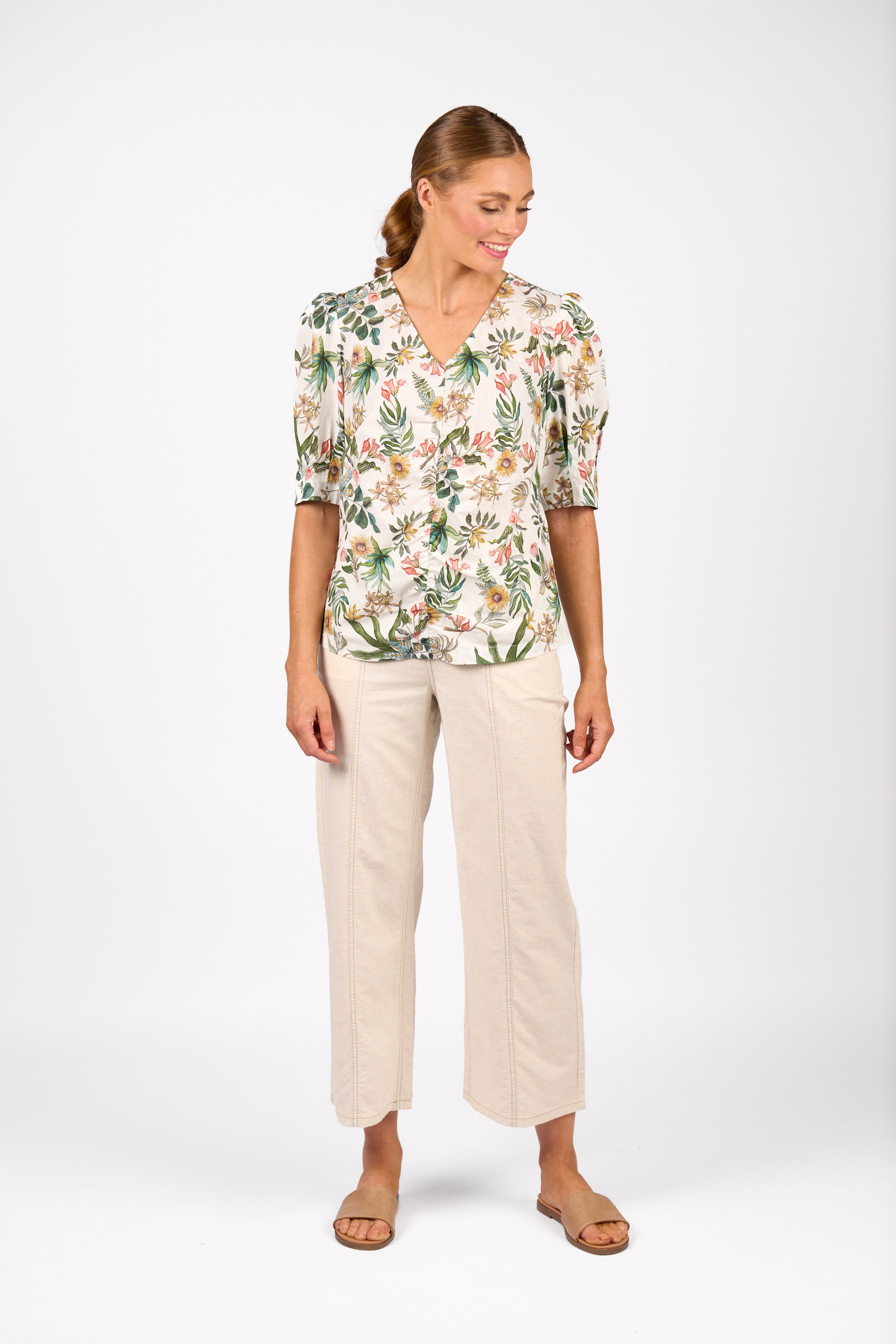 The Fizz Top in Wild print is made from lightweight cotton with a linen look, perfect for adding a feminine touch to your wardrobe. Featuring a flattering V-neckline and a gathered centre front seam, it offers subtle texture and a relaxed, easy fit.