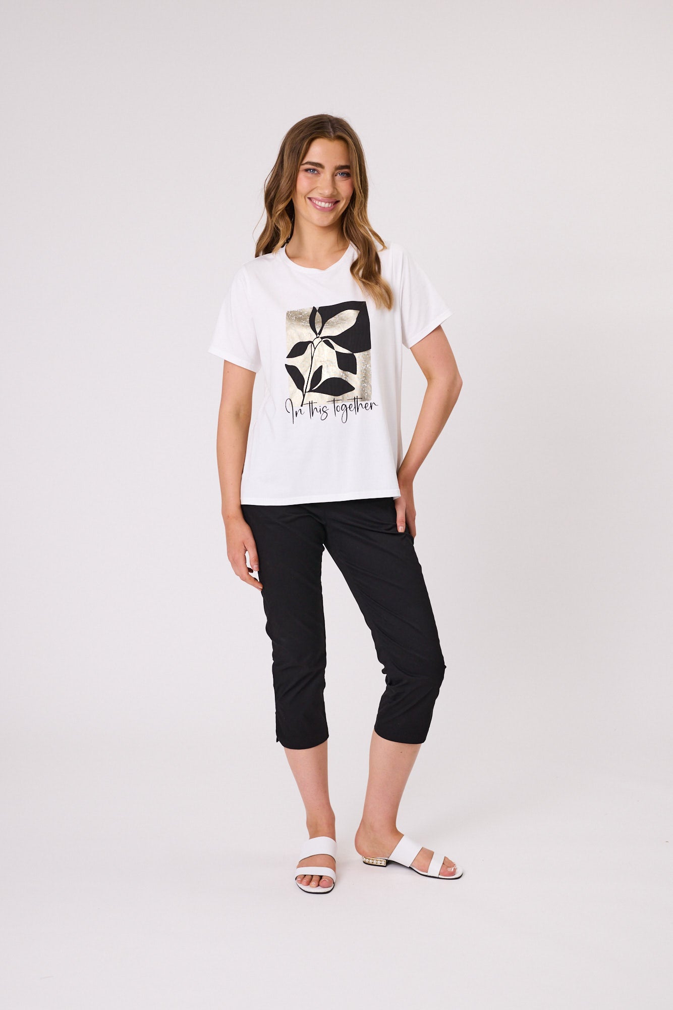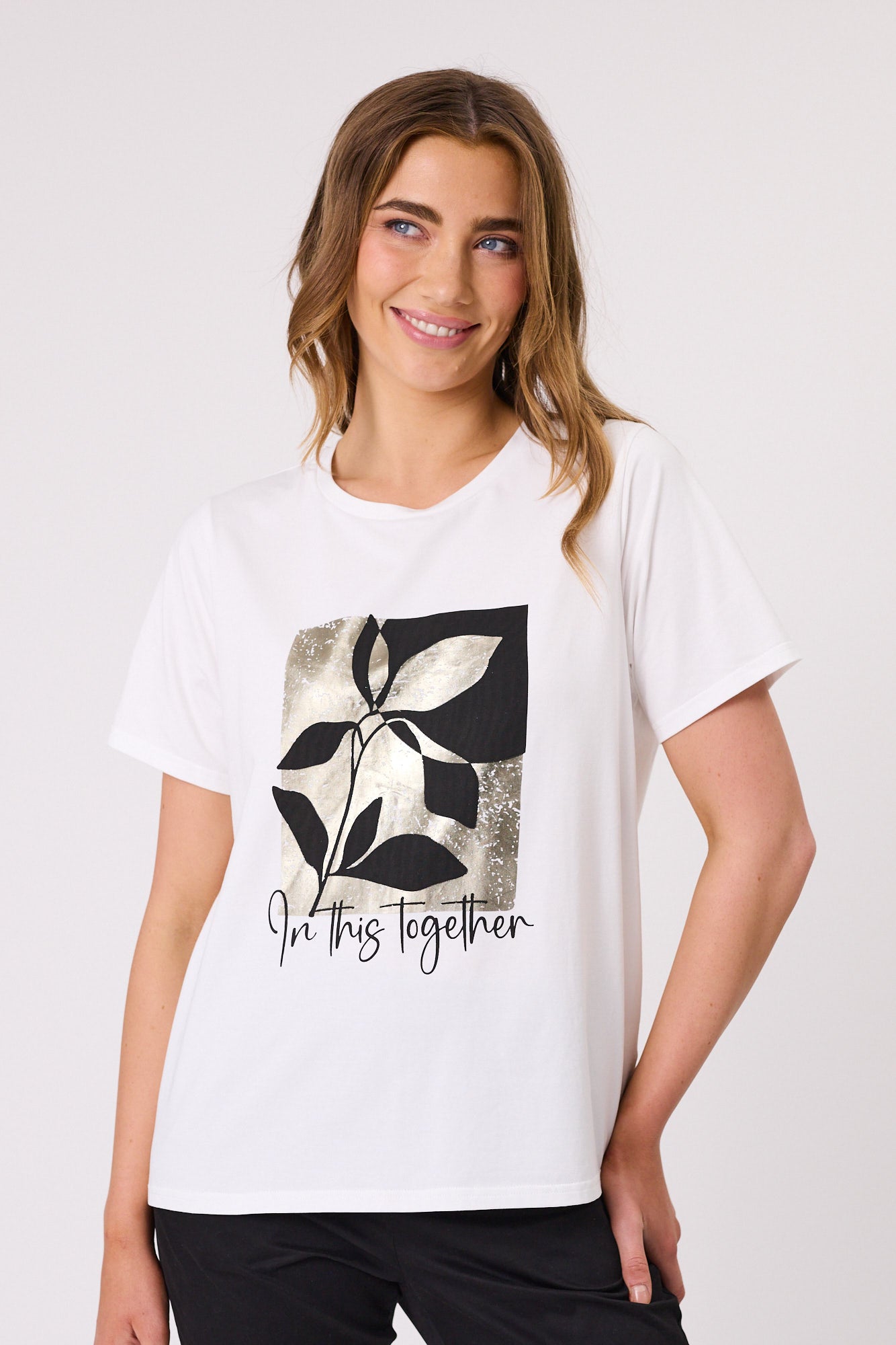 Uplifting and effortlessly stylish, the Democracy In This Together T-Shirt features a metallic front print and a flattering slight A-line fit. Crafted from a soft and stretchy blend of 95% cotton and 5% elastane, it’s your go-to for comfort with a touch of shine.