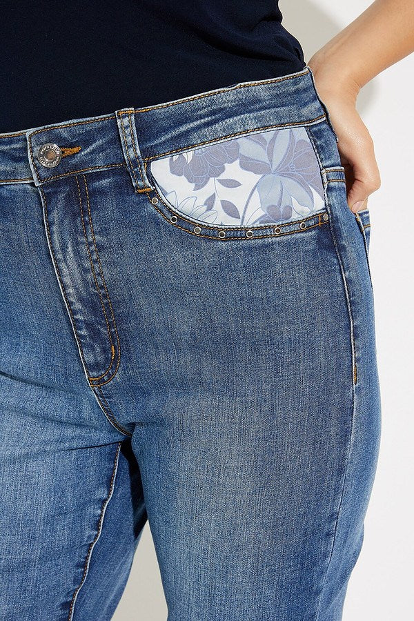 Joseph Ribkoff - Floral Cuffed Jeans - 231928 - Denim 1 x size 14 left
