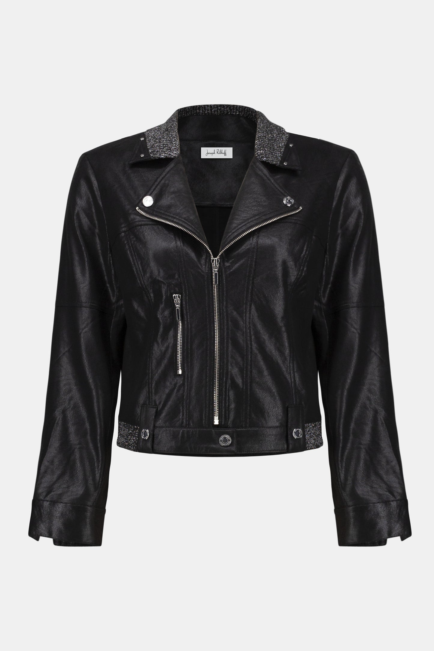 Joseph Ribkoff - Foiled Faux Suede Fitted Jacket - 253978 - Black