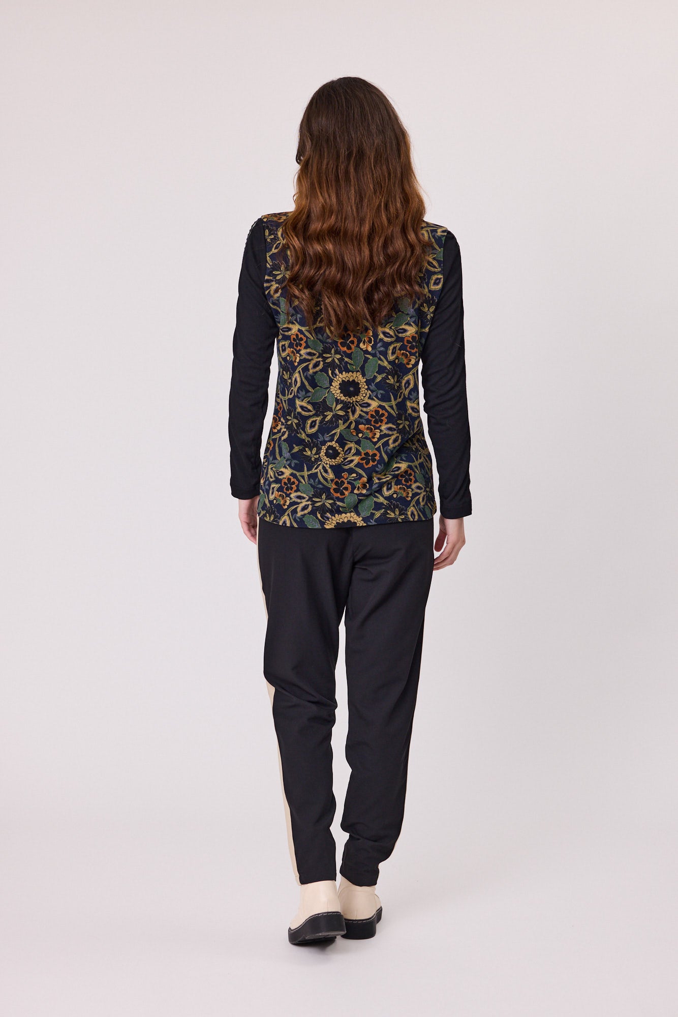 A versatile printed knit designed to slot seamlessly into your winter wardrobe. Featuring a printed knit body balanced with plain contrast areas, this style adds interest without feeling busy. Crafted in a soft stretch knit, it offers comfortable, flattering wear, making it an effortless choice for everyday dressing.