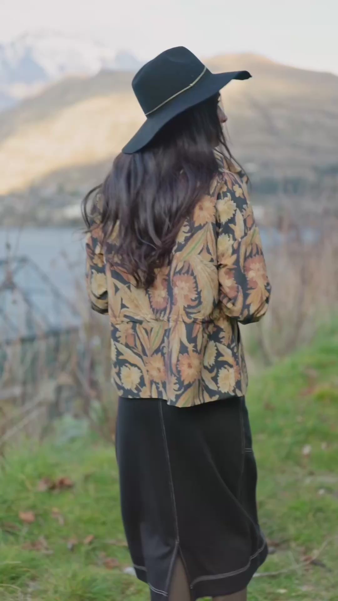 Stay dry in style with this long‑sleeved jacket that blends practicality with personality. Featuring a rich, warm‑toned print layered over a dark base, this statement piece includes a functional front zip closure for easy wear and side pockets for everyday convenience. Finished with a hood for added protection, it’s the perfect outer layer for unpredictable weather.