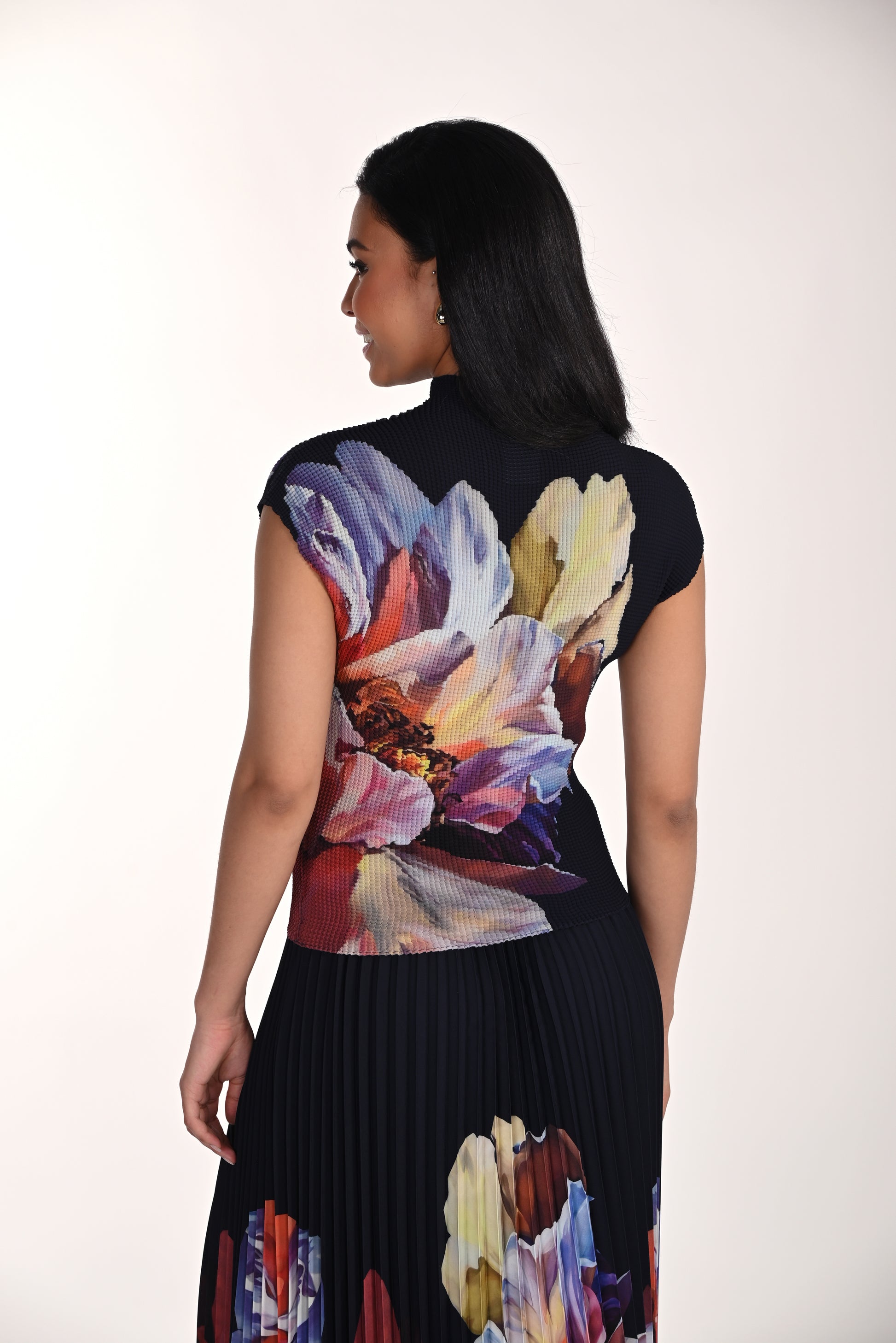 The pleated floral midi skirt in Midnight/Multi features a soft polyester‑elastane woven fabric, elegant pleating, a comfortable elastic waist, and a sophisticated midi‑length silhouette. Fully lined, it delivers feminine style for both casual and semi‑formal occasions.