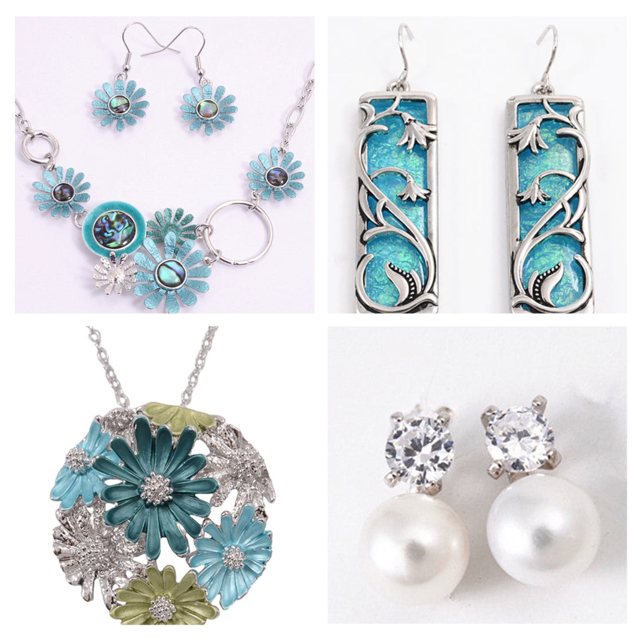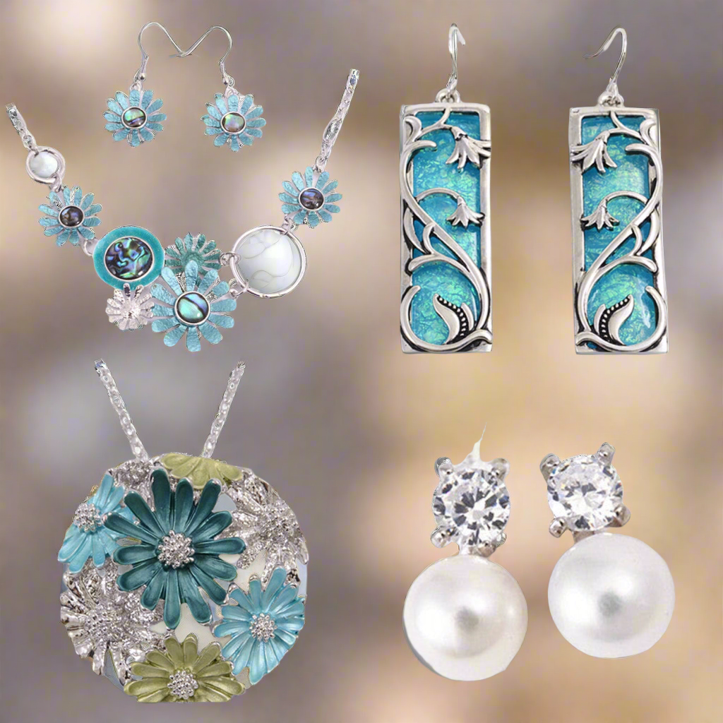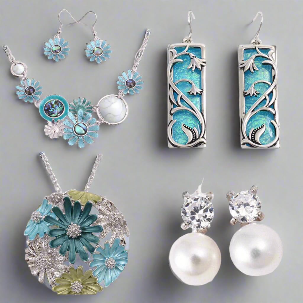Boxed blue pohutukawa rhodium necklace