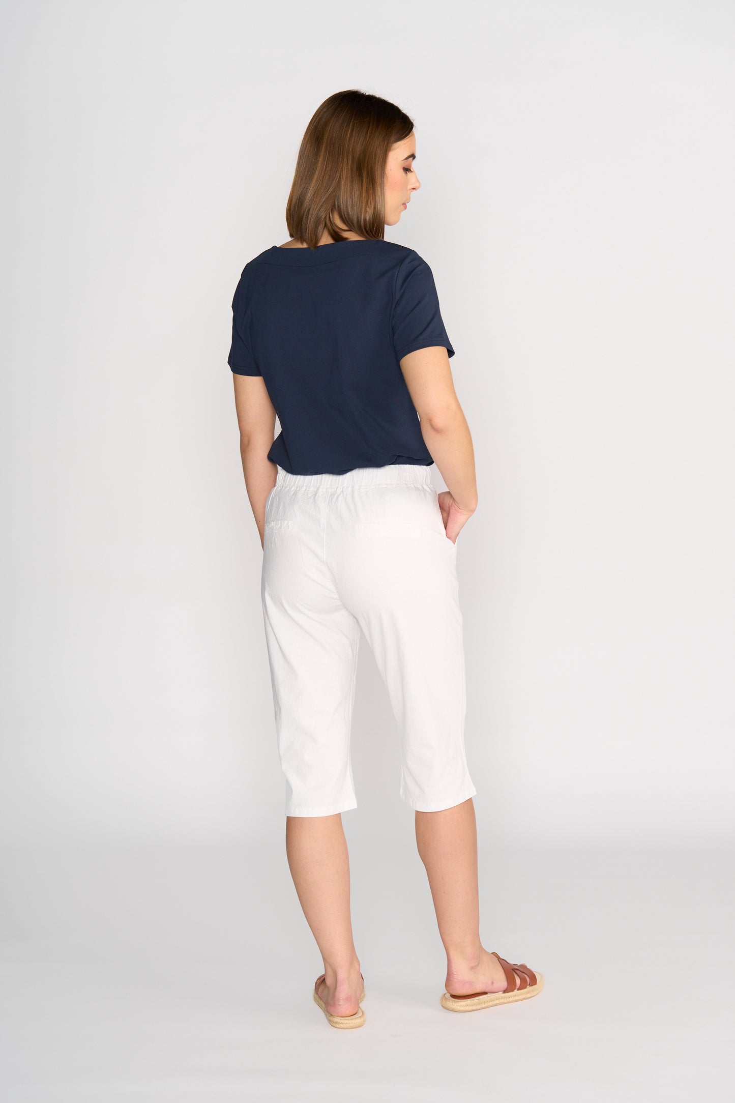 Vassalli Below Knee Slim Leg Elastic Waist Pant – White