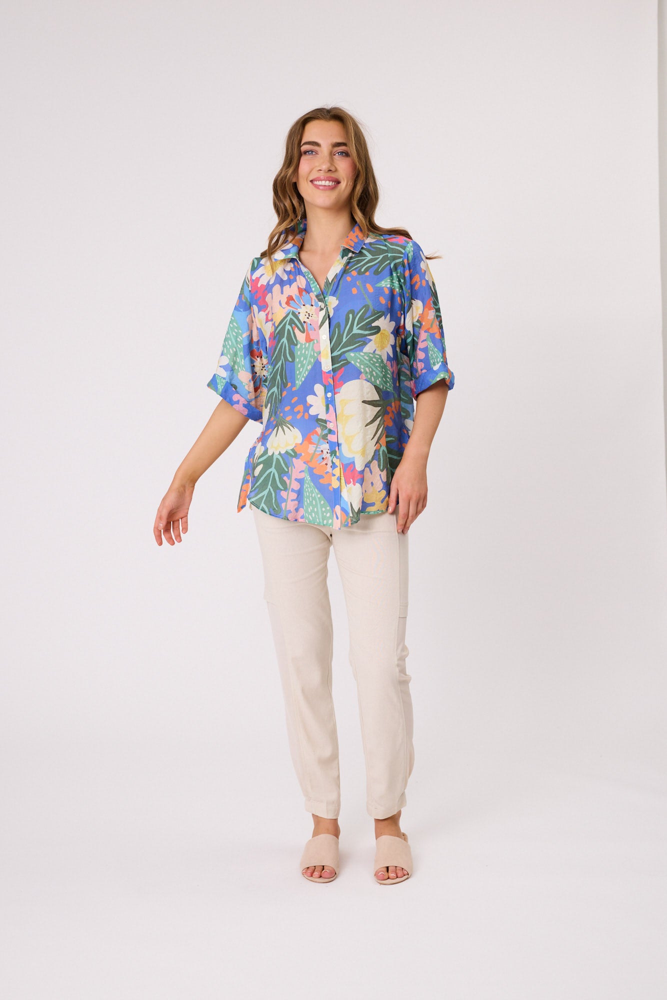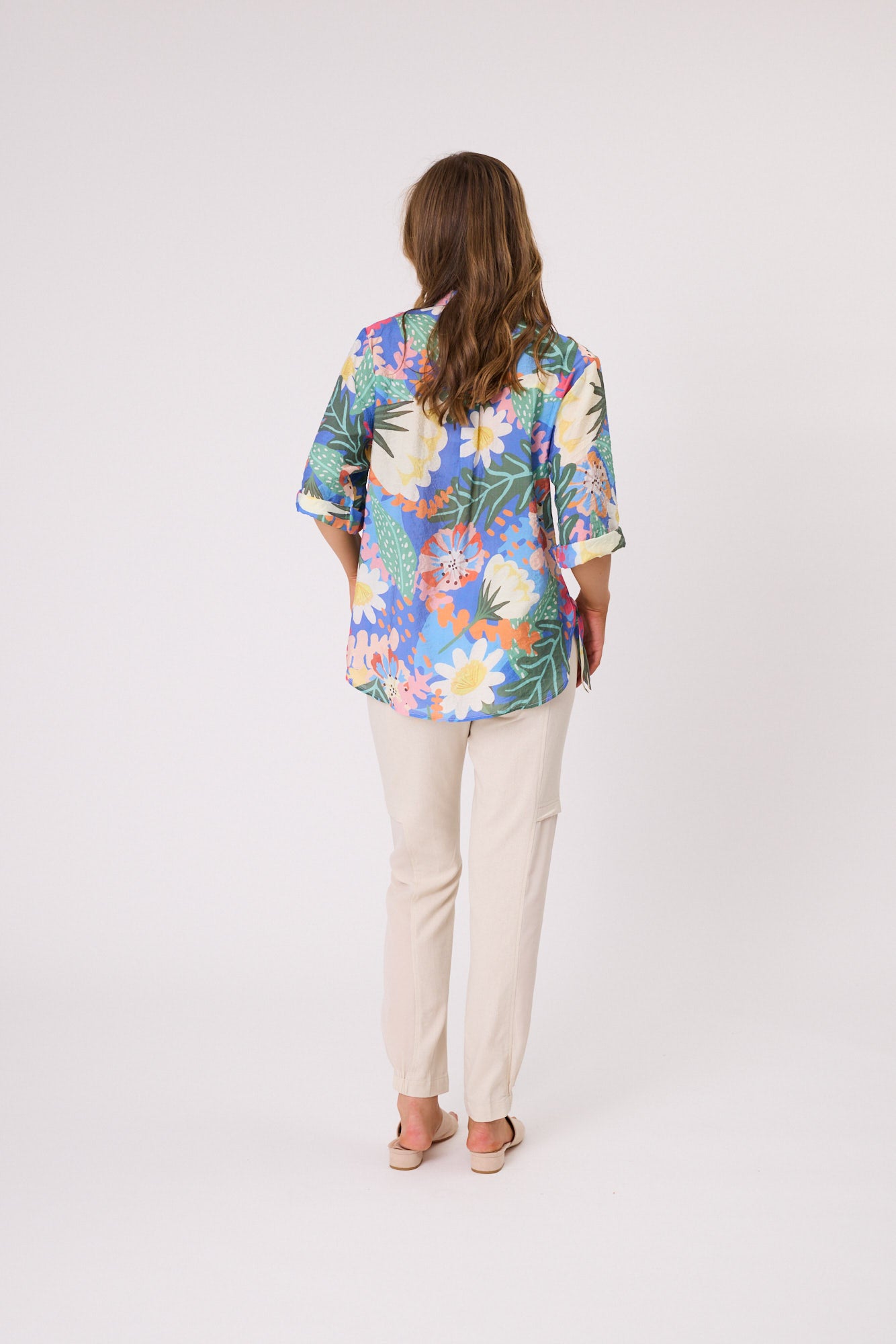 Elevate your everyday look with the Sofia Printed Tie Side Shirt in a beautiful blue print. This button-through longline shirt features stylish side ties for a flattering silhouette and added flair. Made from a lightweight blend of 70% viscose and 30% polyester, it’s the perfect mix of comfort and contemporary style.