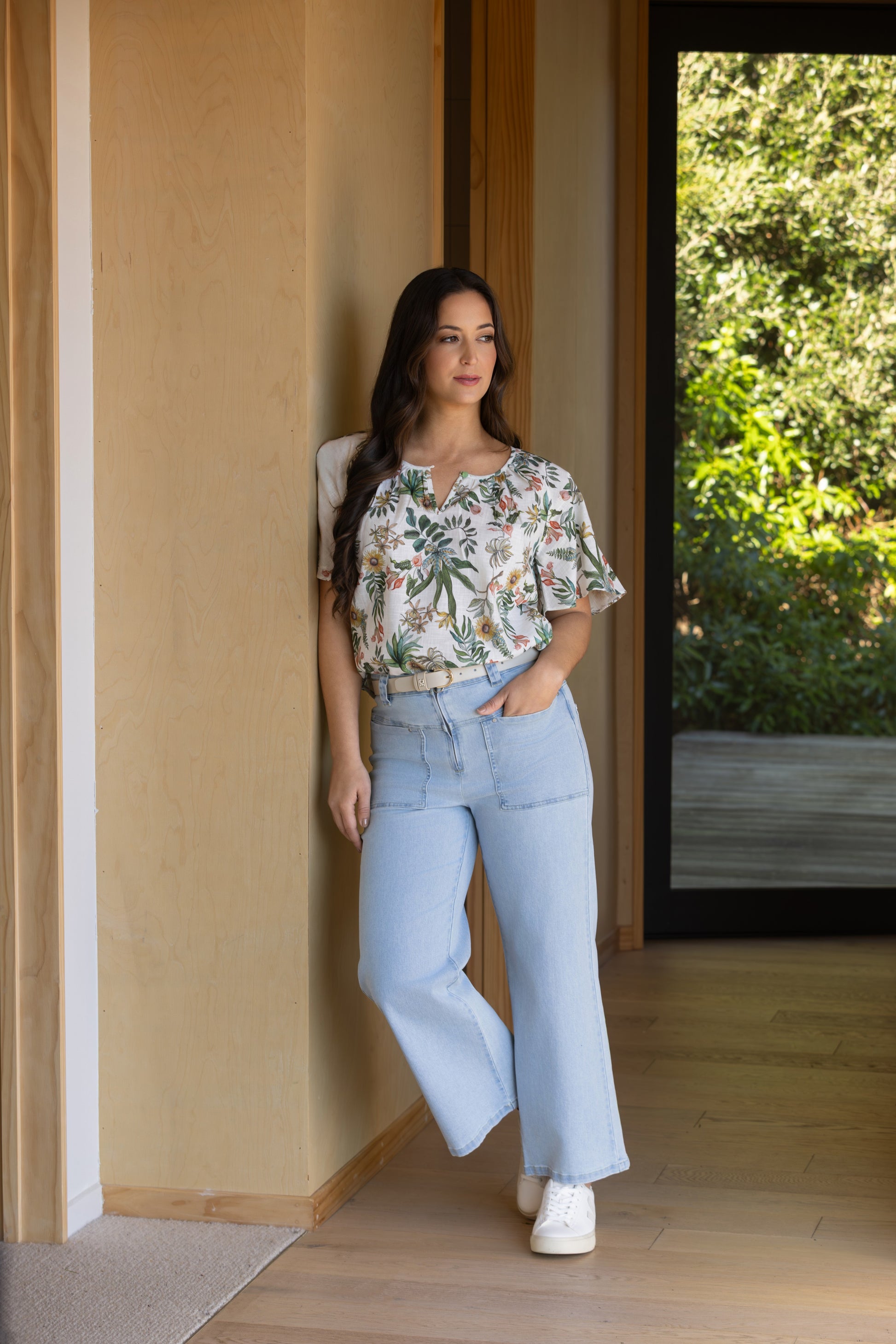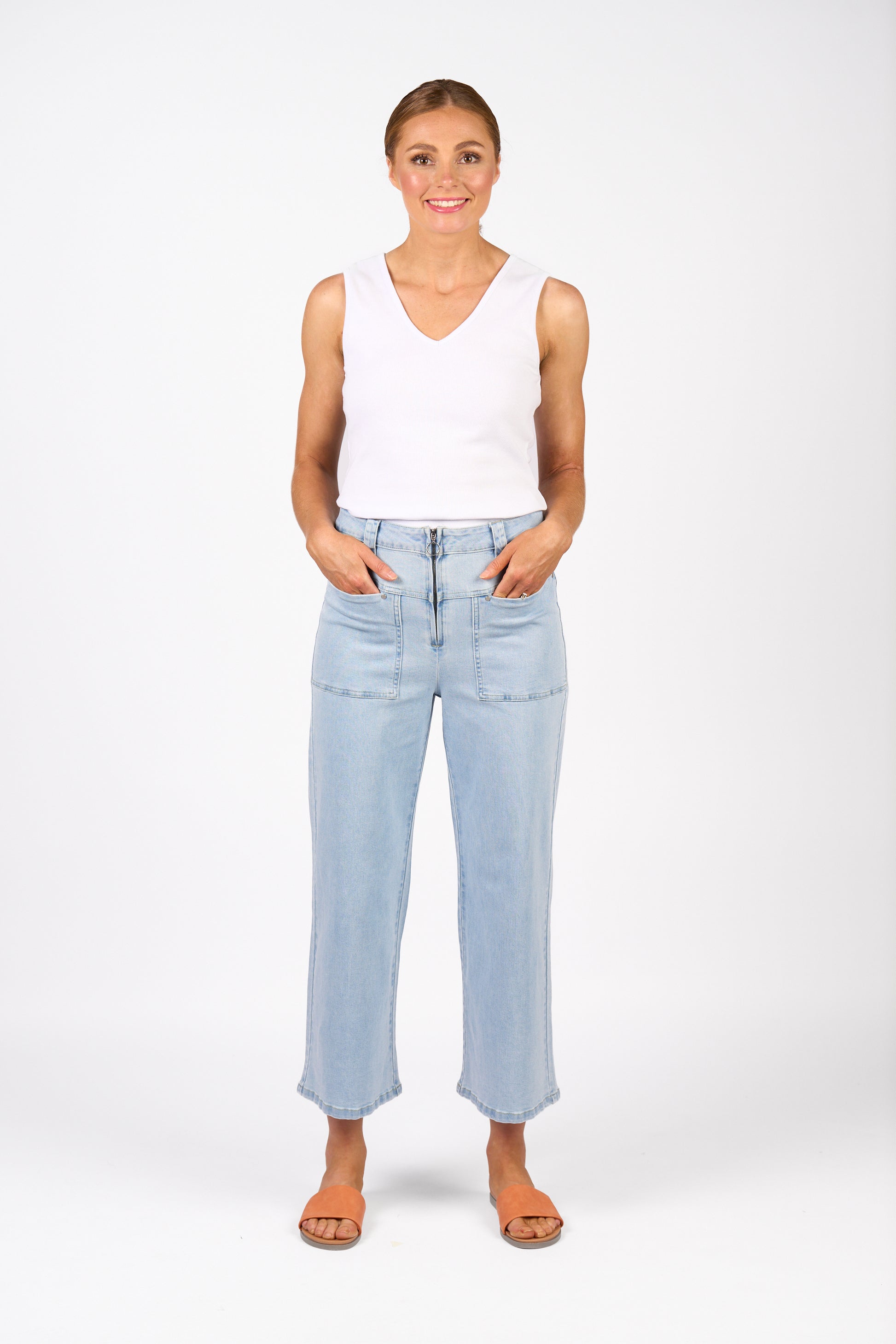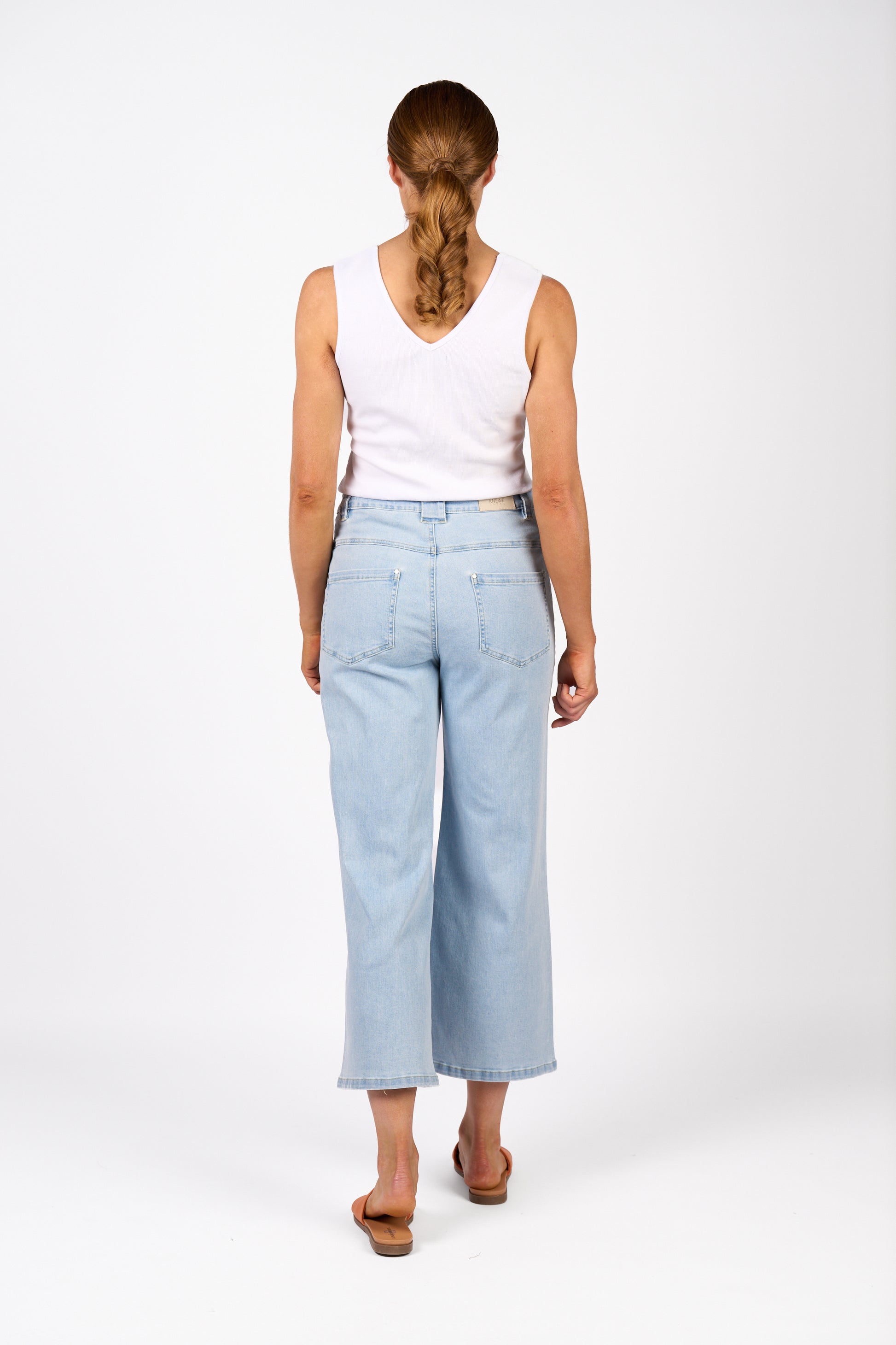 The Spin Jean puts a modern twist on denim with its structured, wide-leg silhouette and ankle-grazing length. Made from soft, medium-weight stretch denim, it offers a flattering fit that moves with you while maintaining shape and comfort.