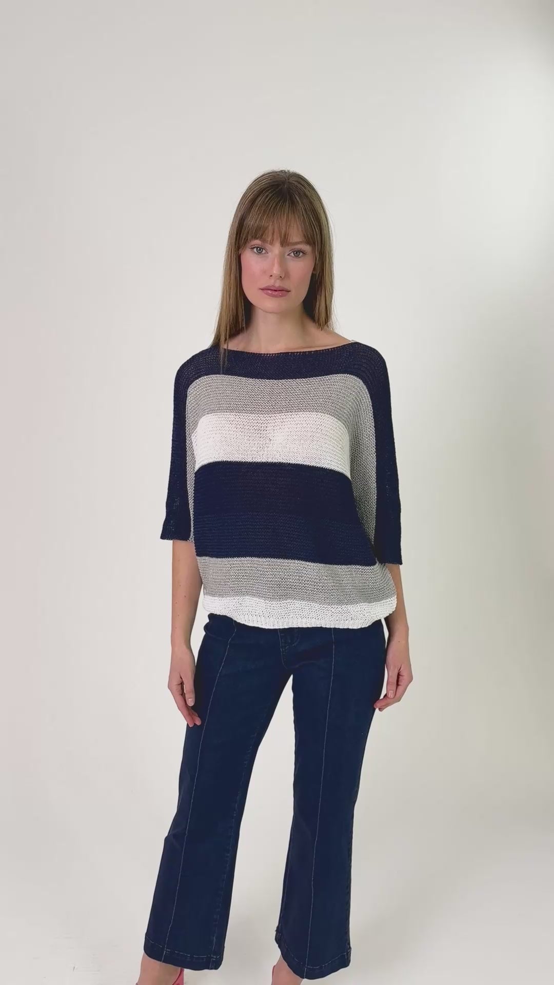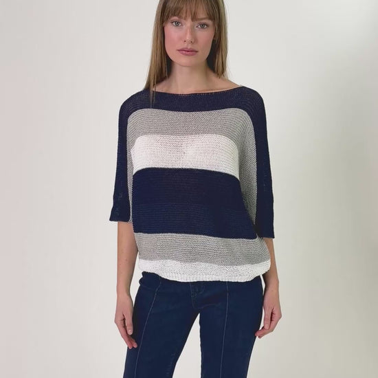 Frank Lyman Stripe Knitted Crew Neck Pullover in Blue/White