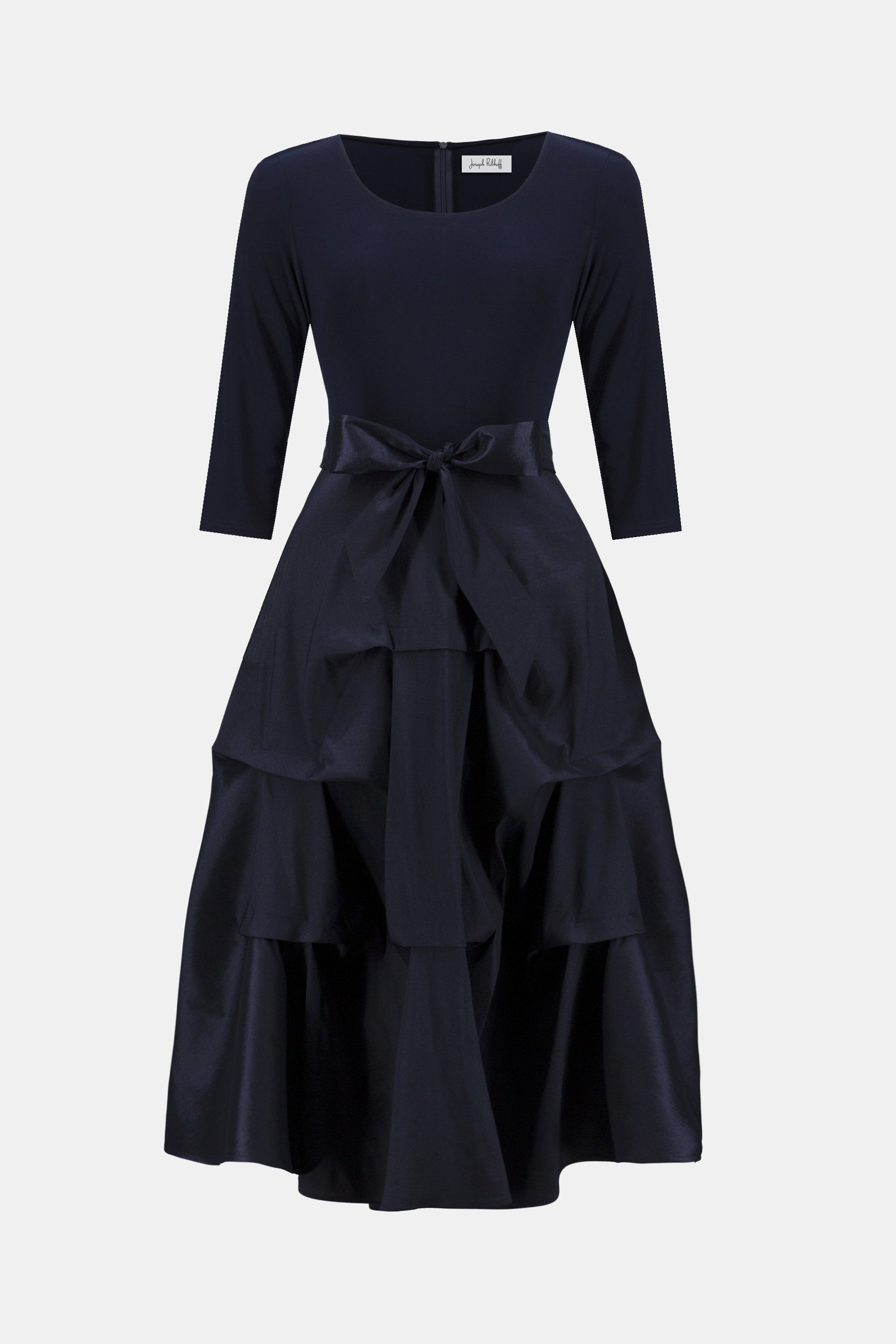 Joseph Ribkoff Stretch Taffeta Fit and Flare Dress with Silky Knit Bodice in Midnight Blue