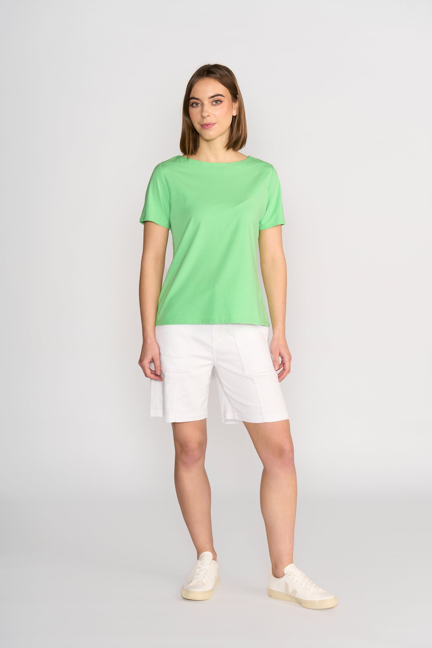 Simple yet refined, the Clover Top by Vassalli is crafted from soft stretch cotton jersey for everyday comfort. Featuring a classic boat neckline with subtle curved stitching detail, this relaxed silhouette delivers timeless polish with ease.