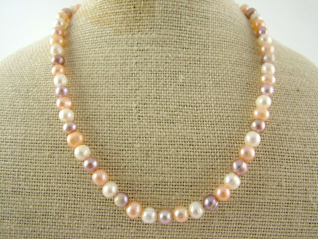 Boxed 18'’ x 3 colors round freshwater pearl necklace.
